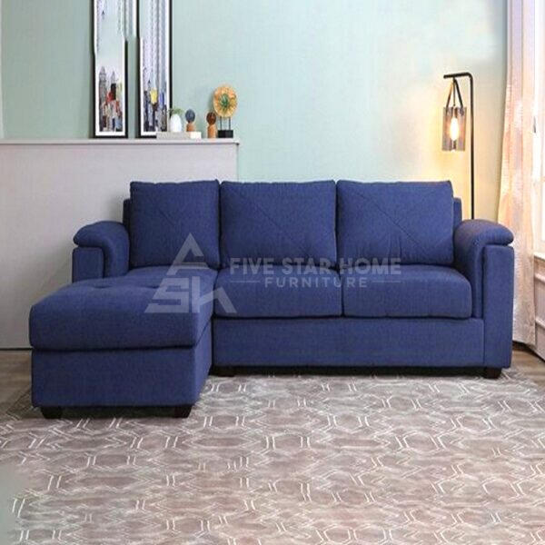 blue upholstered Sectional sofa Dubai lounger will provide you a trendy and comfy experience in the living area. The sofa lounger is featuring track arms, a loose back and seat cushion, squared legs, and multi-function ottoman that can turn the couch into a sectional or chair into the chaise.